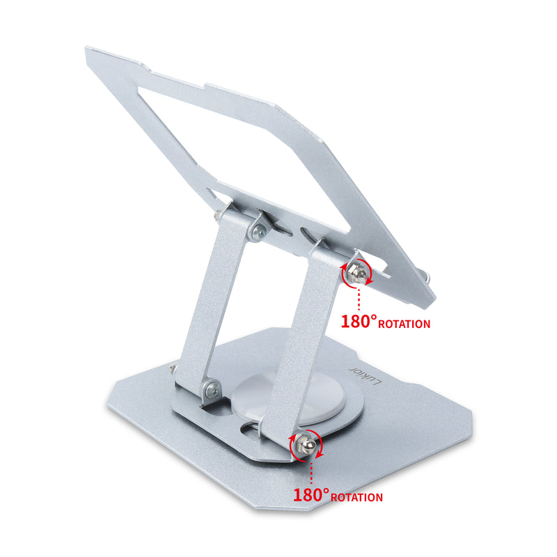 - Full Rotation Flexibility: This tablet stand is 180° adjustable and equipped with a versatile 360° rotating base, ensuring you can position your device at any angle for optimal viewing comfort, ideal for work or play.